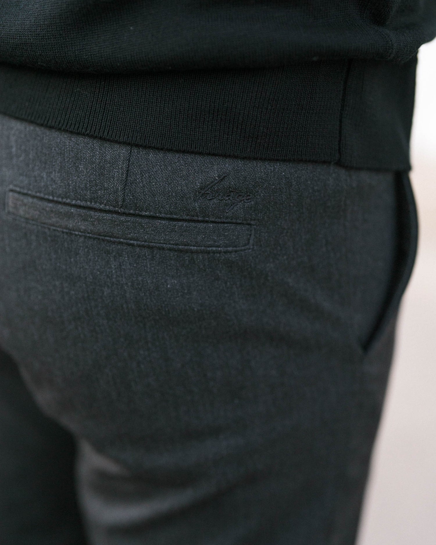 - Embroidery: A fine tone-on-tone embroidery above the back pocket